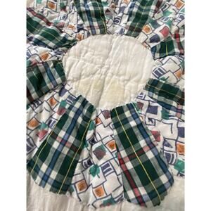 Made out of flour sack material to make Dresden plates. There are some spots to note : only one slight stain that is in the first up close photo. The rest of the photos are of spots or loose pieces. Someone could certainly repair the loose pieces.