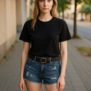 VINTAGE APT. 9 -- Short Shorts, Distressed Denim, Leather Stud Belt, Never Worn