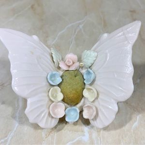 VINTAGE, ARDALT, Flower Adorned BUTTERFLY Pet PIN CUSHION Capodimonte …