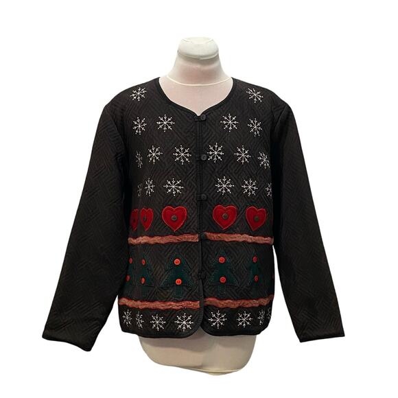 VINTAGE ARIEL Quilted Holiday Christmas Cardigan Jacket L Embroidery Cottagecore
