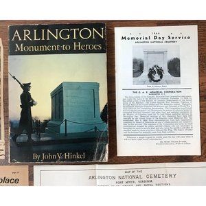VINTAGE "ARLINGTON - MONUMENT TO HEROES" Book (1965, Prentice Hall) and MEMORABILIA COLLECTION. Contains actual newspaper clippings, a 1966 Memorial Day program, and a vintage 1960 map of the cemetery. I found all of the memorabilia within the pages of this book.