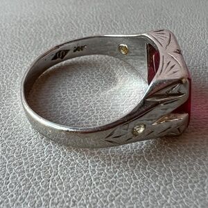VINTAGE ART DECO 14K WHITE GOLD EMERALD CUT SYNTHETIC RUBY RING UNISEX MEN WOMAN