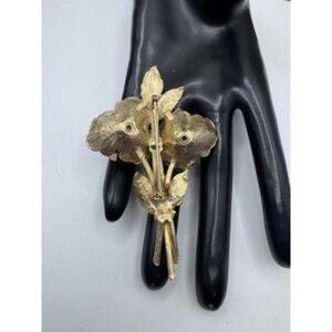VINTAGE ART DECO LARGE FLOWER BOUQUET BROOCH PIN 2 FLOWER ROSE LEAF ENAMEL