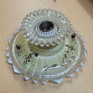 VINTAGE ART DECO STARBURST clear painted GLASS CEILING LIGHT SHADE flush socket