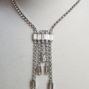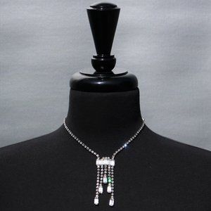 Vintage Art Deco Unique 5 Dangle Fringe Rhinestone Necklace
