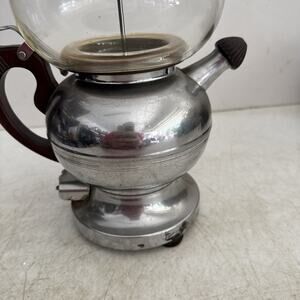 The Vintage Art Deco Farberware Coffee Robot #610 Vacuum Automatic Pot Percolator is a rare and unique collectible kitchen appliance that embodies the Art Deco style. With its sleek design and innovative vacuum pot percolator technology, this vintage Farberware coffee pot is sure to be a conversation starter in any kitchen. Perfect for coffee enthusiasts or collectors of vintage kitchen appliances, this piece offers both functional and aesthetic value for those looking to add a touch of nostalgia to their home.