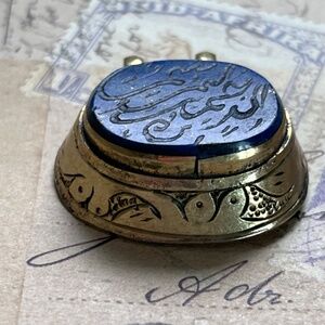 VINTAGE ARTISAN Etched Cobalt & Silver/Gold Pendant