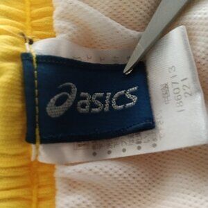 VINTAGE ASICS RUNNING SHORTS, YELLOW WITH SIDE SLITS, ASIAN SIZE "O" (33" - 34"). These shorts are pre-owned. They have "JAPANESE-STYLING" and "ASICS" Text Logo on Front, are fully lined, and have an internal Drawstring Closure. Perfect for the gym, these shorts are a fit as a Swimsuit or Swim Brief coverup. Super for any athletic endeavor. Overall, these shorts are in great condition.