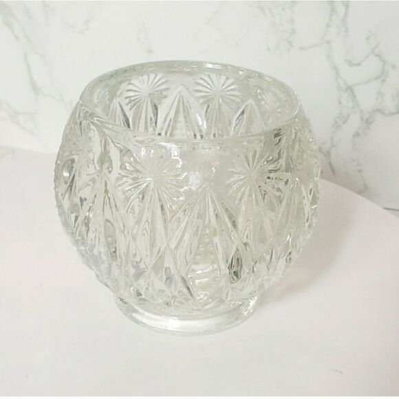 VINTAGE AVON Diamond Cut Crystal Clear Glass Bowl Decor Candle Dish
