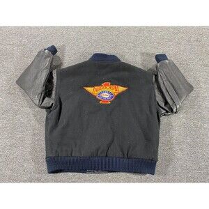 VINTAGE A&W Jacket Mens 2XL XXL Black Bomber Snap Button Up Leather Felt Patch