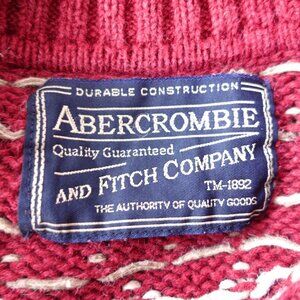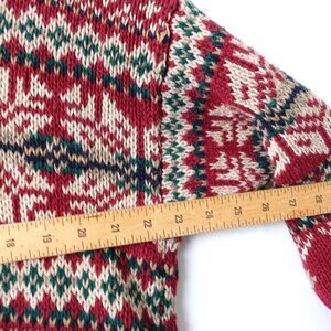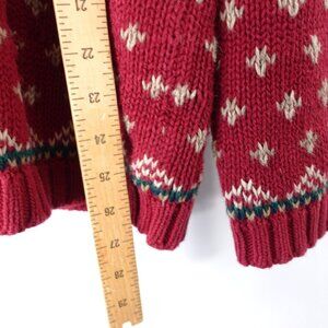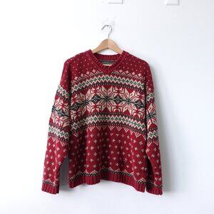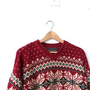 VINTAGE Abercrombie Fitch Sweater Large Red Holiday V Neck Nordic Heavy Knit 90s