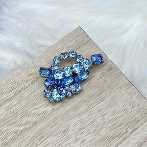VINTAGE Abstract Blue Rhinestone Spray Brooch Formal Scarf Pin