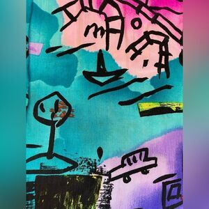 VINTAGE Adam Douglass All Over Print Silk Shirt Women Large Multicolor 90s
