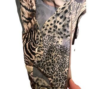 VINTAGE Adam Douglass Womens Puff Jacket Blazer Animal Print Gray