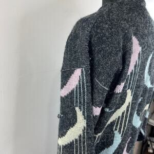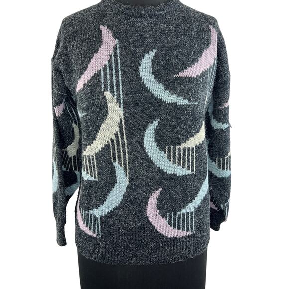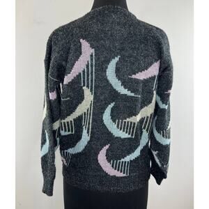 VINTAGE Adele Knitwear Retro Print Gray Silver Pullover Sweater Crew Neck 3 VTG