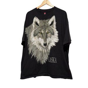 VINTAGE Alaska Wolf Shirt Adult Size 2X Black Graphic Nature Tee Mens