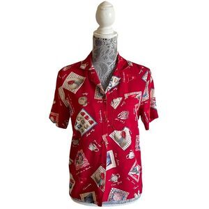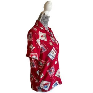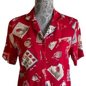 VINTAGE Alfred Dunner Novelty Print Red Blouse Size 6P