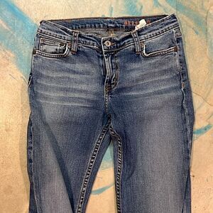 Great preowned condition. Lying flat the waist measures approximately 14 inches and the inseam is approximately 34 inches and the rise is approximately 8 1/2 inches.