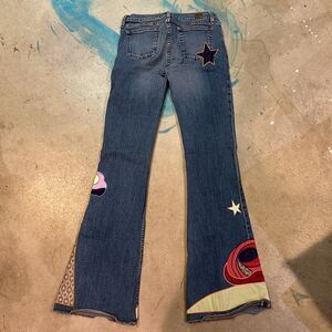 VINTAGE Allen B. By Allen Schwartz Boho Patchwork Retro Boot Cut Jeans C28