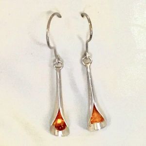 VINTAGE Amber Sterling Silver Drop Dangle Earrings
