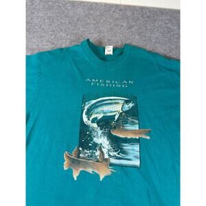 VINTAGE American Fishing Shirt Mens XL Blue Graphic Short Sleeve Tee Streetwear