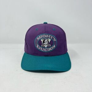 VINTAGE Anaheim Mighty Ducks Hat Cap SnapBack Purple NHL Logo Annco