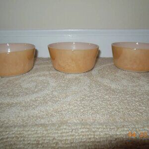 A set of 3 Vintage Anchor Hocking Fire-King peach colored Custard Bowl dishes, in Very Good condition.