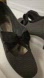 VINTAGE Ann Marrio Gray Strip Black Bow Slipon Heels sz 11