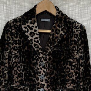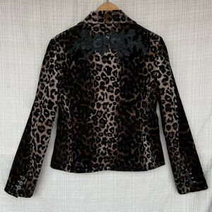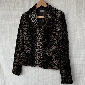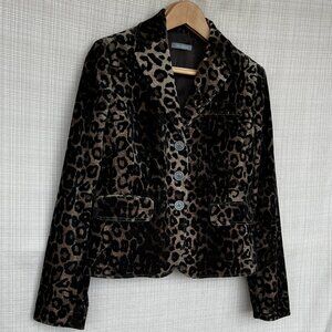 VINTAGE Ann Taylor Animal Print Leopard Print Velvet Blazer with Embroidered A…