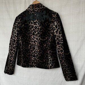 Ann Taylor Velvet Leopard Blazer with Embroidered Lace Appliqué