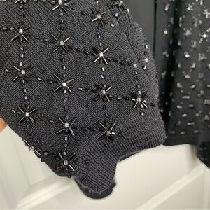 VINTAGE Ann Taylor Merino Wool Sequin Black Cardigan