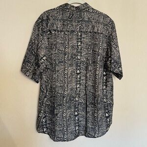 VINTAGE Anna And Frank Shirt Womens Medium Button Up Blouse Top Abstract Black Beige Silk