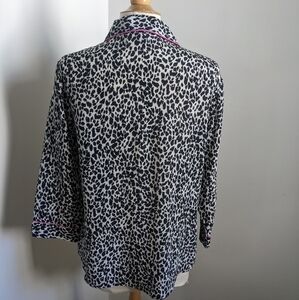 VINTAGE Anna and Frank 100% Silk Blouse Black and White Animal Print L