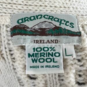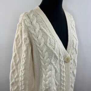 VINTAGE Aran Crafts Cream Irish 100% Merino Wool Cable Kni Cardigan Sweater L