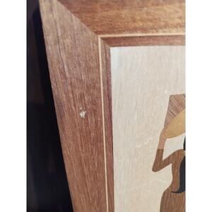 VINTAGE Asian women Friends WOOD INLAY MARQUETRY Pair Set Small Framed Wall Art