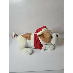 Vintage Atico Singing Christmas Santa Bulldog Plush Toy Musical Holiday Decor