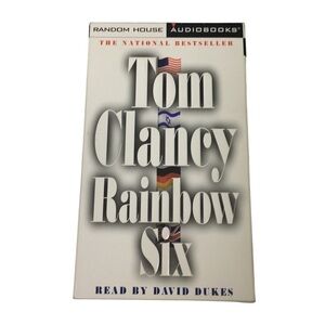 Rainbow Six by Tom Clancy. Approximately 6 hours on 4 cassettes. Cardboard has creasing & bends from age & storage. Not sealed. Printed in Canada and manufactured in the USA. 1998 Random House Inc.