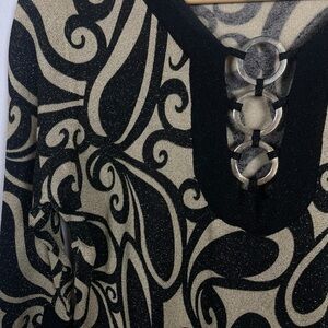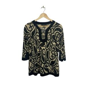 VINTAGE August Silk Knits Metallic Paisley Blouse in Black/Gold Size L