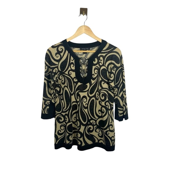 VINTAGE August Silk Knits Metallic Paisley Blouse in Black/Gold Size L