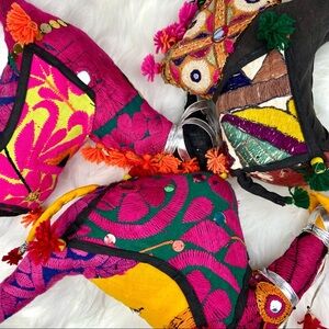 Authentic vintage and handmade in India, these animals are gorgeous and colorful, detailed with embroidery, contrasting threads, tassels and mirrored sequins - beautiful craftsmanship!