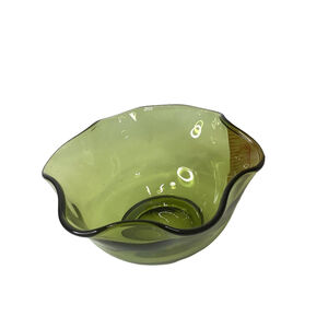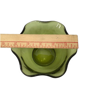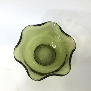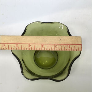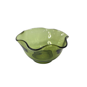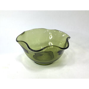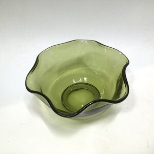 Vintage Avocado Green Wavy Ruffled Glass Bowl Anchor Hocking? size 5" x 2.5"in good condition, no chips or cracks!