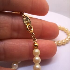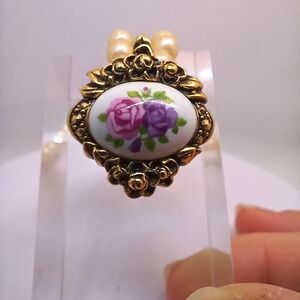 VINTAGE Avon Faux Pearl Neclace with Brass and Ceramic Charm Victorian 1930s