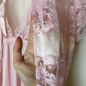💀 VINTAGE BABY PINK FLOOR LENGTH MAXI ROBE & SLIP DRESS SET