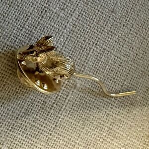This vintage Ballou pin features a detailed gold-tone mouse sitting inside a wedge of cheese — complete with long tail and sweet little eyes. A true collector’s piece 🐭
