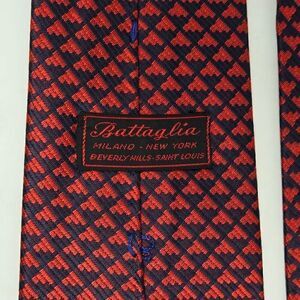 VINTAGE BATTAGLIA SILK TIE RED BLACK TRIANGLE TEXTURED SATIN 3.75" X 57"