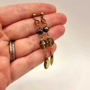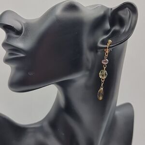 Vintage gold, eggplant, green beaded dangle earrings. See photos for measurements. euc Comes in a jewelry pouch with extra backs.