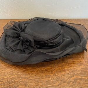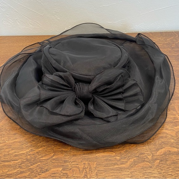 VINTAGE BETMAR NEW YORK BLACK BOW TULLE SHEER DRAMATIC DERBY WOMENS RETRO HAT