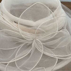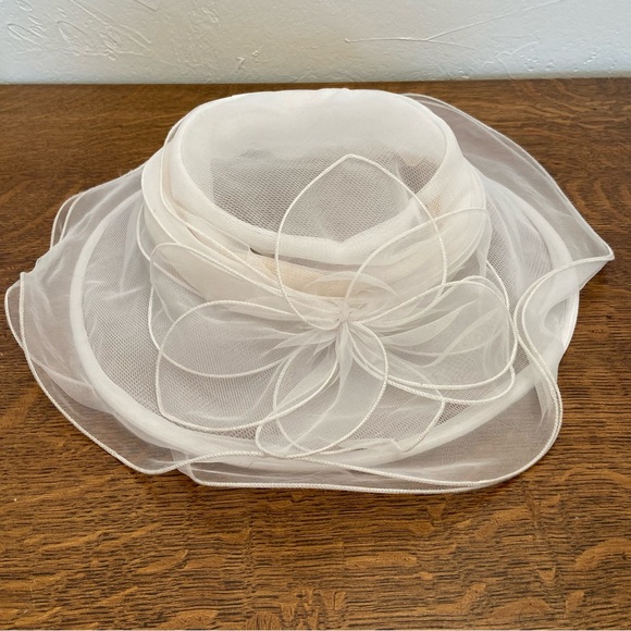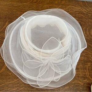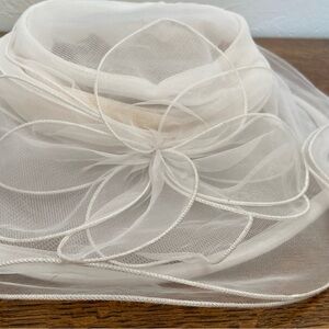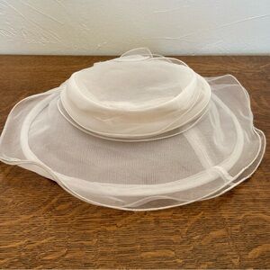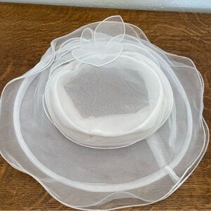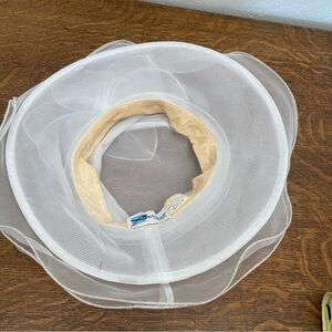 VINTAGE BETMAR NEW YORK TULLE SHEER DERBY FANCY SUN WOMENS WHITE RESORT HAT