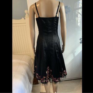 Stunning Vintage Betsey Johnson Evening Black Silk (blend) Embroidered Midi Evening Tulle Dress.
