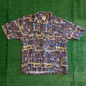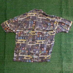 VINTAGE BIG DOGS MENS BUTTON UP SHIRT SHORT SLEEVE RACING PRINT 90’S SIZE XXXL
